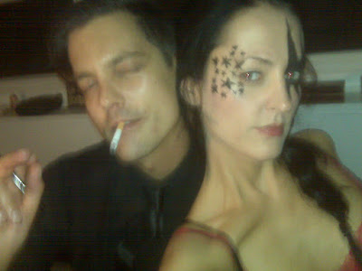 Last year in October there was a fun KISS party at St. Jerome's I went to and my dear friend Thorsten did a quick make up transformation of my face during a dinner party at a friends house. I went with stars all over my temple and a weird zig-zag shape over my other eye as you can see below. At St. Jerome's later that night, there were Terry and Gaga tucked into the corner where I usually hang out. As you might have seen in this post from April 2011 Terry is a fan of my husband and that's how we ended up talking. Long story short, eventually Gaga and I chatted a bit about the love for unicorns and the movie "The last Unicorn". Terry took a couple of shots with her and maybe you can make me out in the mirror....